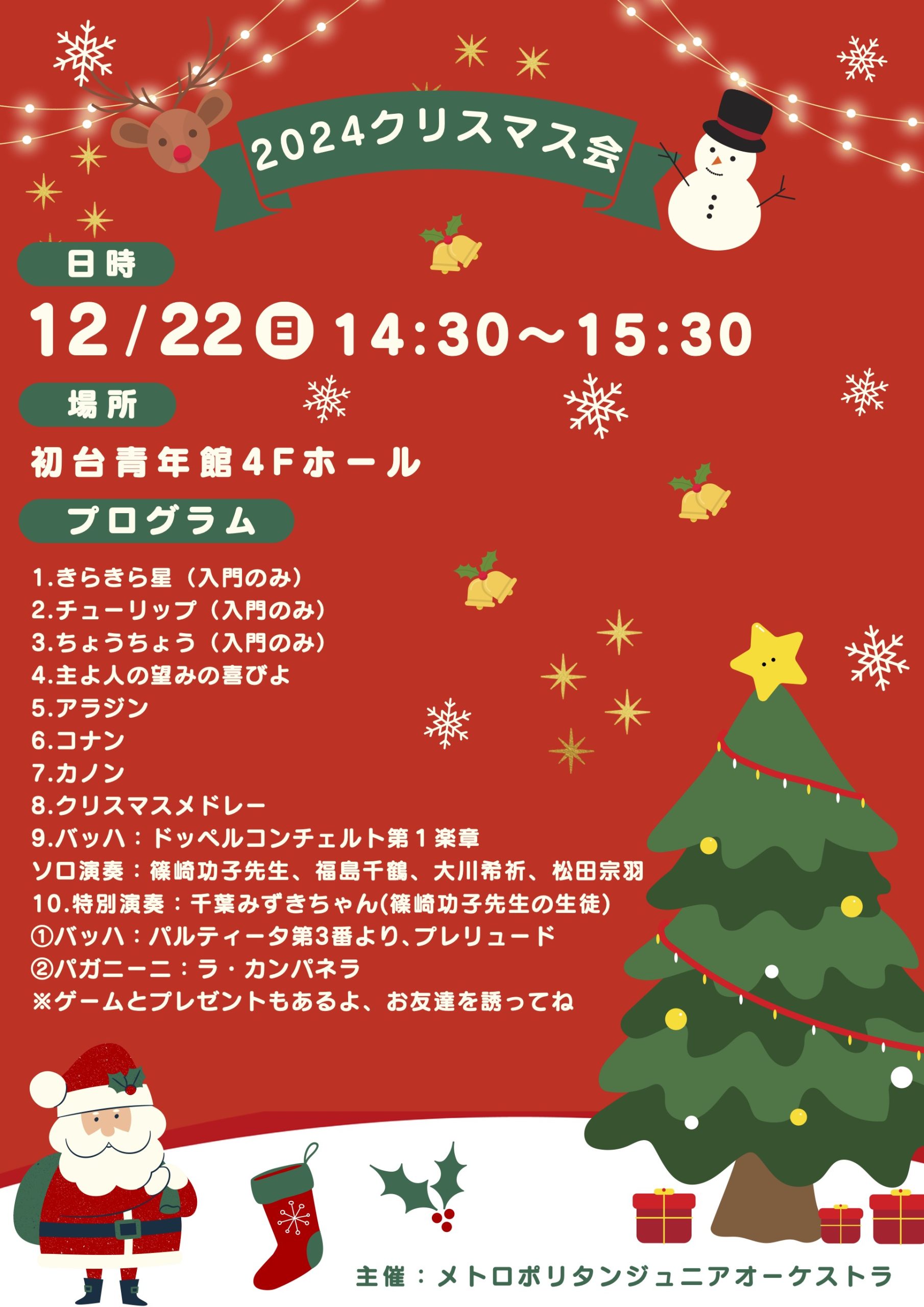 12月22日、クリスマス会を行います! 今年秋に入団したお友達には、初めての発表となります。 そのほか、アニメ曲や恒例のクリスマスの曲のほか、 今年で4年目になる中級のクラスではバッハの曲などにも挑戦します。 演奏会の後 […]