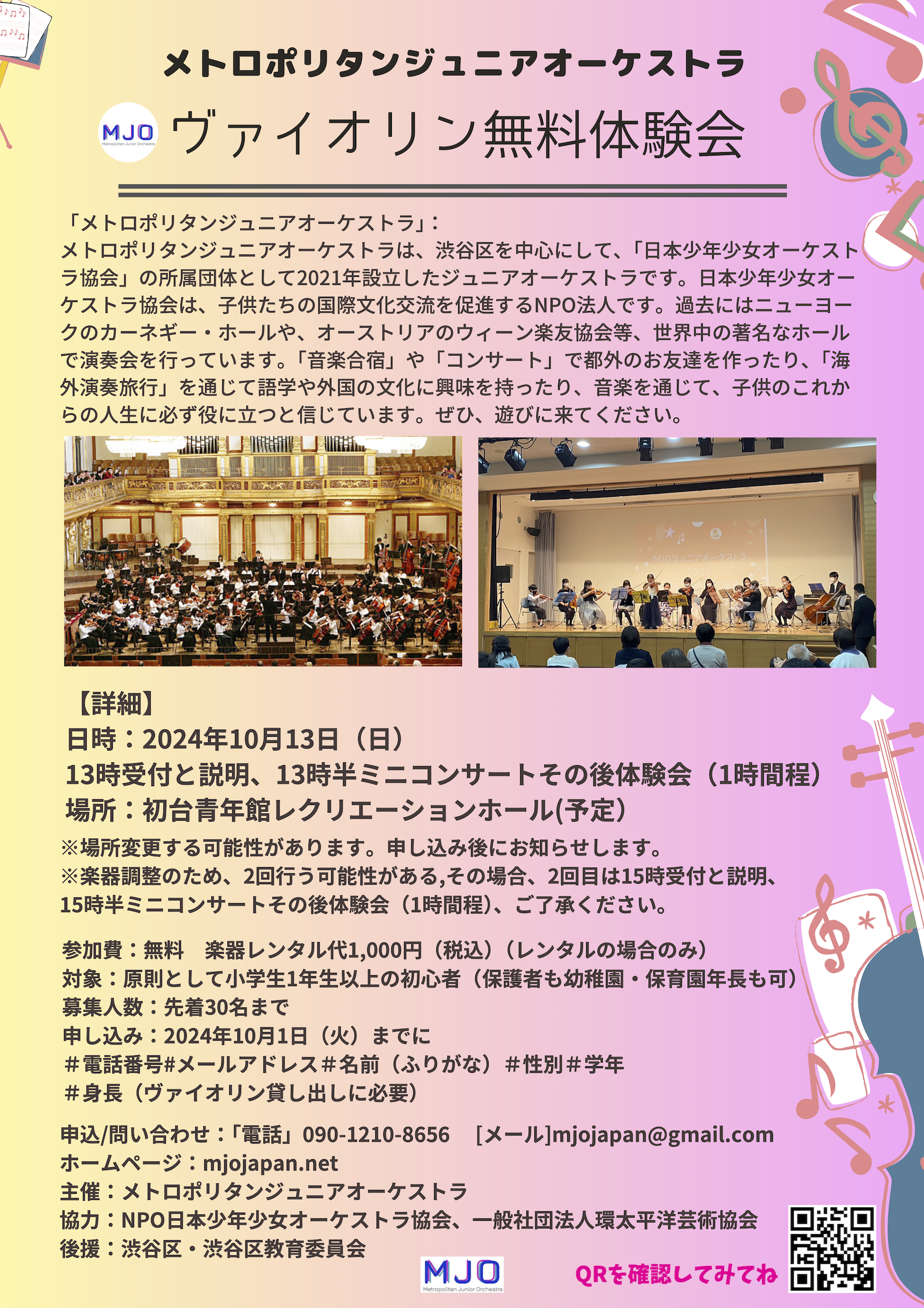 今年もヴァイオリン体験会を開催します。 10月13日(日)13時より、渋谷区初台青年館で行います。 申し込みは、メールはまたはホームページの体験会申し込みフォームより必要事項をご記入の上お送りください。 申し込みフォーム […]
